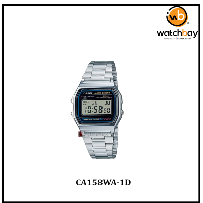 "• 1/100-second stopwatch • LED light • Stainless steel band • Water resistant • Square face"