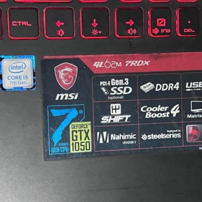 Core(TM) i5-7th gen RAM -16 GB Display -15.6 size Keyboard red light Dedicated Graphics GTX 1050 2 GB DDR5 Ssd 256 GB upgrade လုပ်ထားပါသည် Price -920000ks