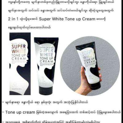 မျက်နှာအတွက် သပ်သပ် ခန္ဓာအတွက် သပ်သပ်လဲမဝယ်ချင်ဘူး ဆိုတဲ့သူတွေအတွက် 2 in 1 သုံးလို့ရအောင် Super White Tone up Cream လေးကို ရွေးချယ်ထုတ်လုပ်ပေးထားပါတယ်