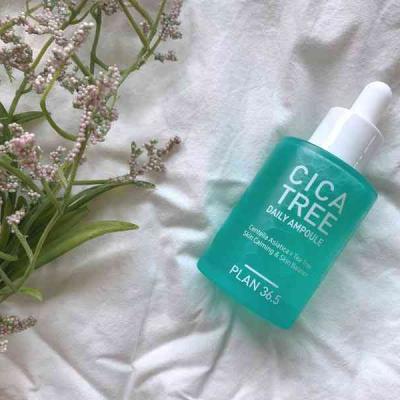 Plan 36.5 Cica Tree Daily Ampoule သည် အသားအရေကို ချောမွေ့စေပြီး ဟန်ချက်ညီစေရန် ဒီဇိုင်းထုတ်ထားသည့် အသားအရေထိန်းပစ္စည်းဖြစ်သည်။