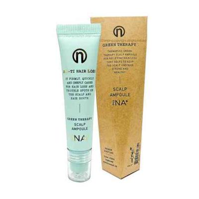 ထုတ်ကုန်သည် NA+ Green Therapy Scalp Ampoule ဖြစ်ပြီး ဆံပင်ကျွတ်ခြင်းကို ဖြေရှင်းရန်နှင့် ကျန်းမာသော ဦးရေပြားကို မြှင့်တင်ရန် ဒီဇိုင်းထုတ်ထားသည်။