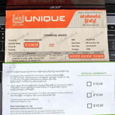 Acer Warranty Card & Unique ဆိုင် ဘောင်ချာပါမည်