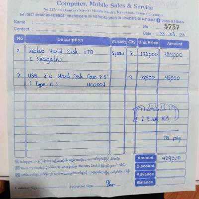 hard disk 1လုံးကို 192000 (2year Warranty)