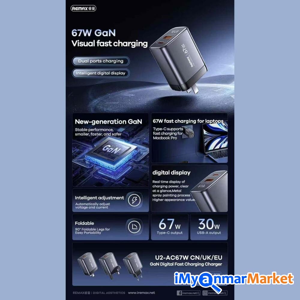 Type-C output: 5V⎓3A / 9V⎓3A / 12V⎓3A / 15V⎓3A / 20V⎓3.35A (67W Max)