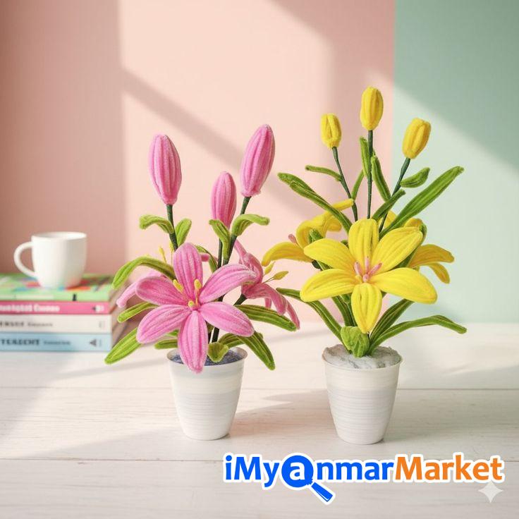 ဘယ်တော့မှ ညှိုးနွမ်းမသွားမယ့် အနုပညာ... Handmade Pipecleaner Flower Basket လေးတွေပါ။ လက်နဲ့တစ်ပွင့်ချင်း သေချာဖန်တီးထားတာမို့ တကယ့်ပန်းတွေအတိုင်း နုနယ်လှပနေမှာပါ။ အိမ်ခန်းထဲမှာ အလှဆင်ဖို့ဖြစ်ဖြစ်၊ အမှတ်တရလက်ဆောင်ပေးဖို့ဖြစ်ဖြစ် ရေရှည်ခံတဲ့ ဒီလို Handmade ပန်းခြင်းလေးတွေက အကောင်းဆုံးရွေးချယ်မှုပဲပေါ့။"