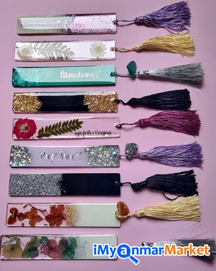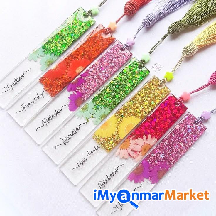 ကြည်လင်နေတဲ့ Resin အသားထဲမှာ သဘာဝ ဒေစီပန်းခြောက်လေးတွေ၊ သစ်ခက်လေးတွေနဲ့ ရွှေမှုန်လေးတွေကို အနုစိတ် ထည့်သွင်းဖန်တီးထားတာမို့ ဒီဇိုင်းအဆန်းလေးနဲ့ချစ်စရာကောင်းနေမယ့် bookmarkလေးတွေပါရှင့် တစ်ခု ၃၀၀၀/ CUSTOMIZE နာမည်ထိုး မယ်ဆို ၈၀၀၀ပါရှင့်