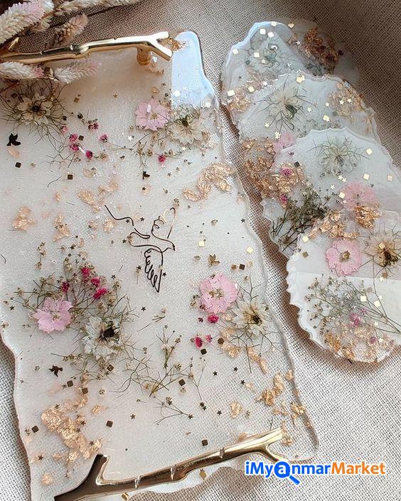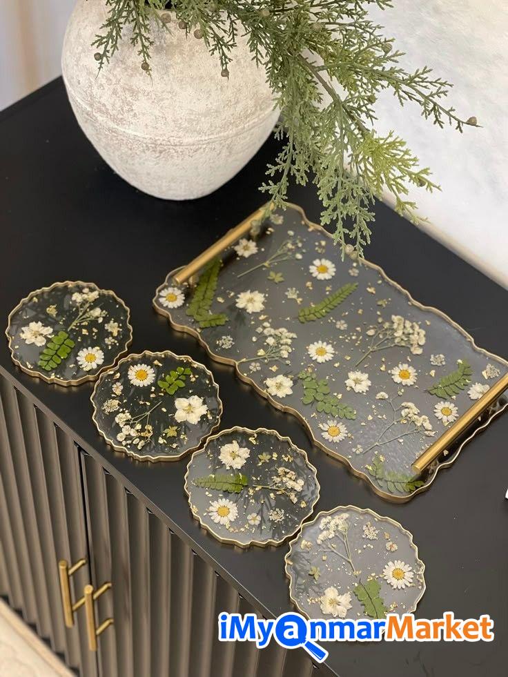 မိသားစုနဲ့ အတူတူ လက်ဖက်ရည်သောက်ချိန်လေးမှာပဲဖြစ်ဖြစ်၊ အိမ်ကို အလည်လာတဲ့ ဧည့်သည်တွေကို ဧည့်ခံတဲ့အခါမှာပဲဖြစ်ဖြစ် ကိုယ့်ရဲ့ အိမ်လေးကို ဒီထက်ပိုပြီး အသက်ဝင်လှပသွားအောင် ဒီ Resin Set လေးနဲ့ အလှဆင်လိုက်ရအောင်ပါရှင့် (COSTER 4 ခု ဗန်း၁ခု ၇၀၀၀၀)