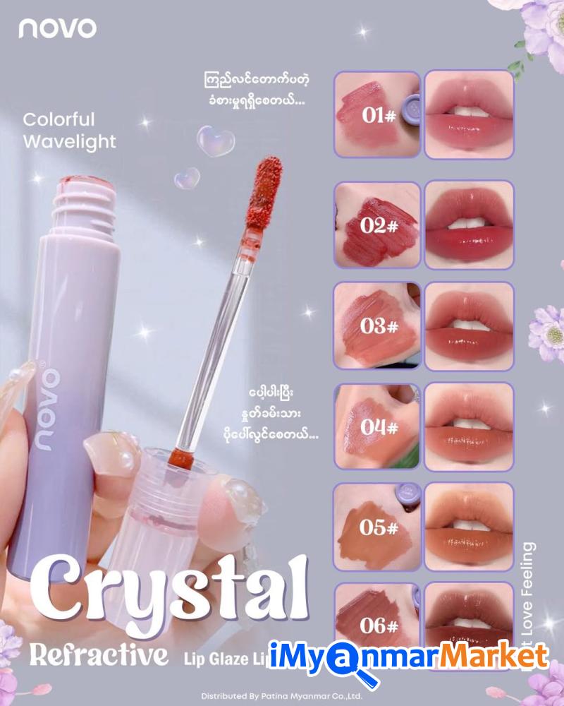 ချစ်စရာကောင်မလေးတို့အတွက် စိုစိုဖူးဖူးနှုတ်ခမ်းလေးရစေမဲ့ novo crystal lip glaze✨ 💋