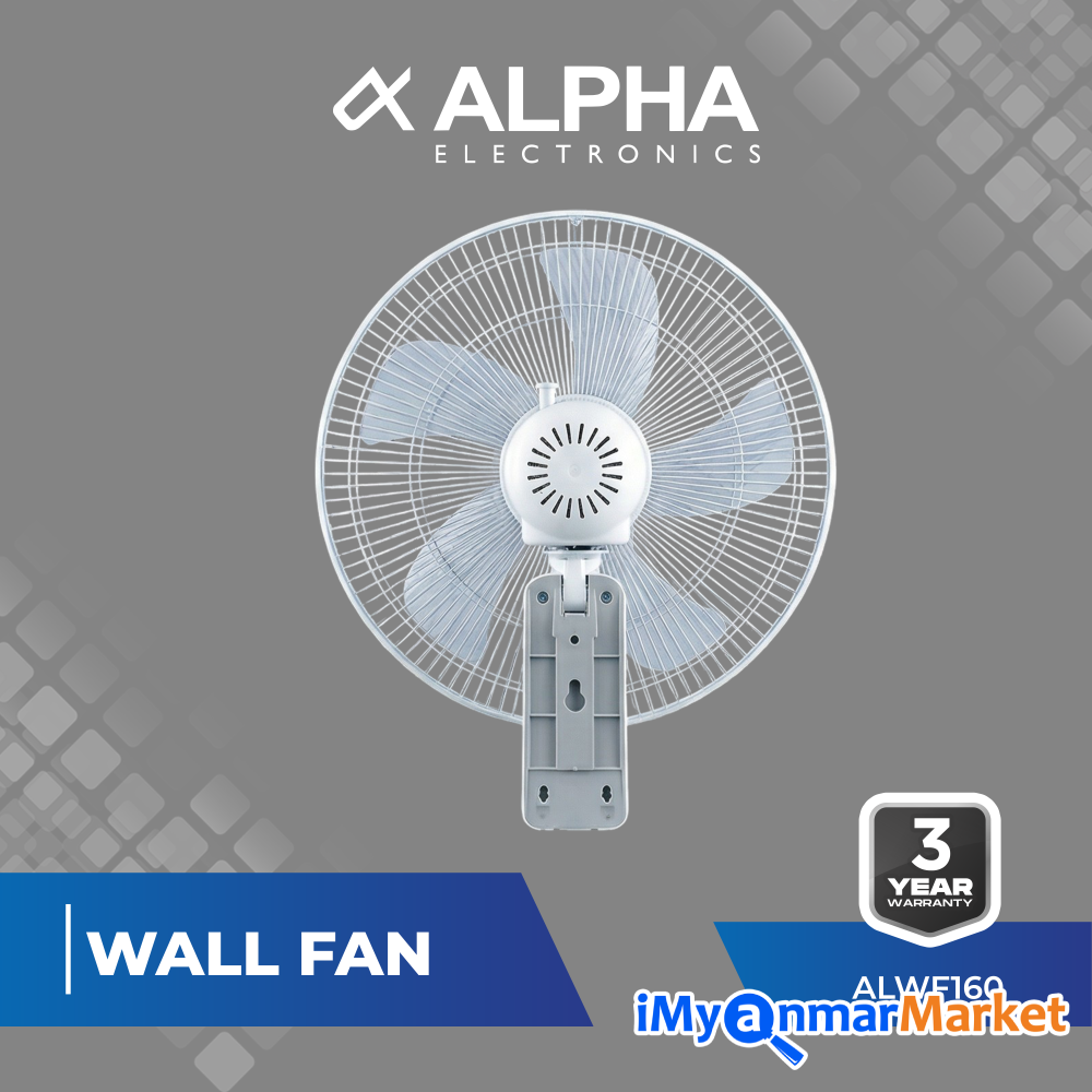 ALWF 160 ALPHA WALL FAN "Voltage - 220/240 V Frequency - 60 Hz Power - 50 W G.W - 5.2 kg N.W - 4.5 kg Size - 455*205*458 mm"
