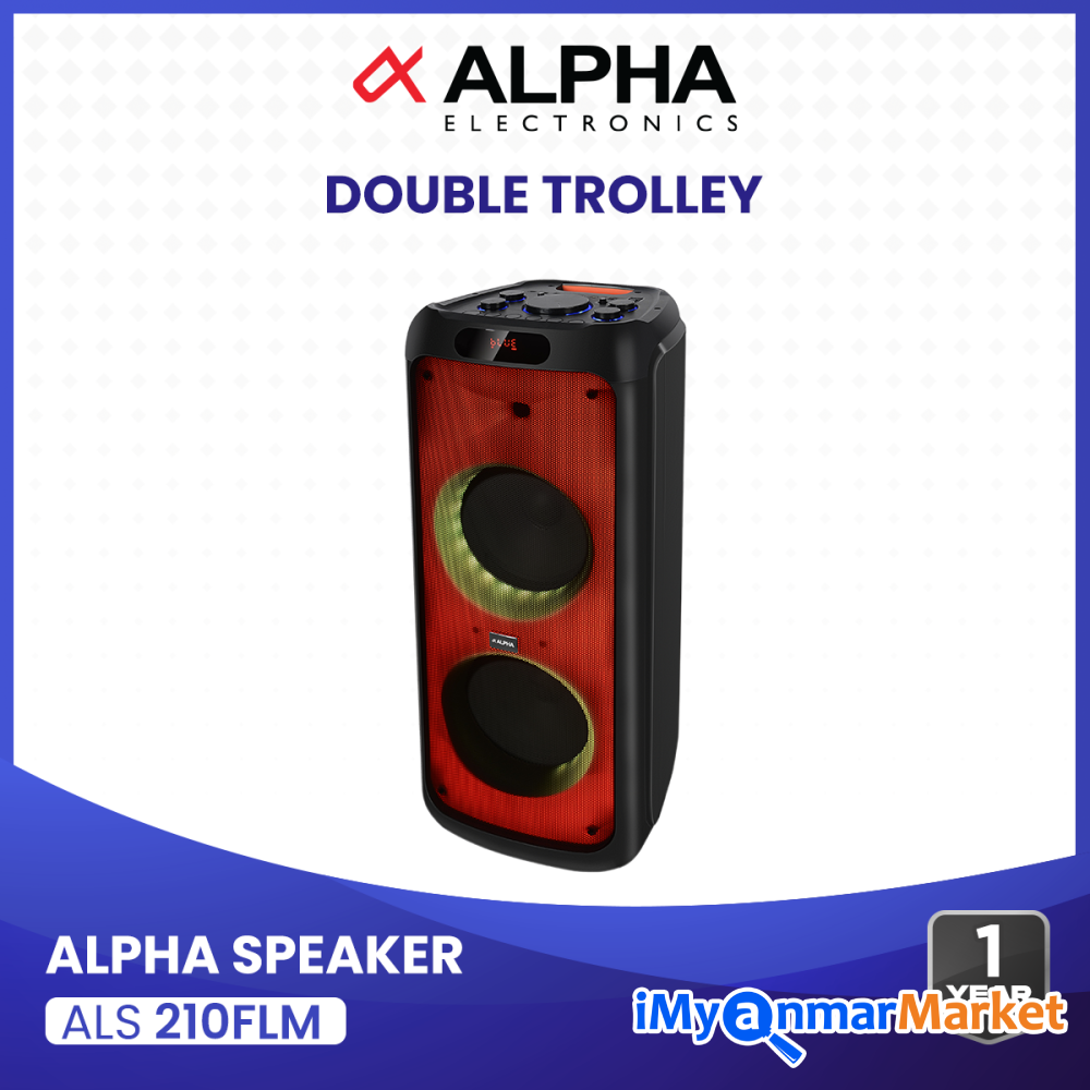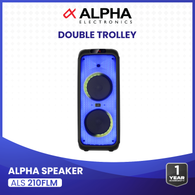 ALS-210FLM 10*2 INCHES DOUBLE TROLLEY(TWS) "Double Trolley 10 inches remote included 1 Mic included USB/SD card/AUX Bluetooth/FM Build in rechargeable Battery 200 W True Wireless Stereo LED Colour Light 1 year warranty"