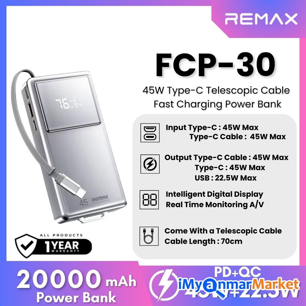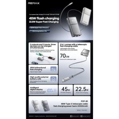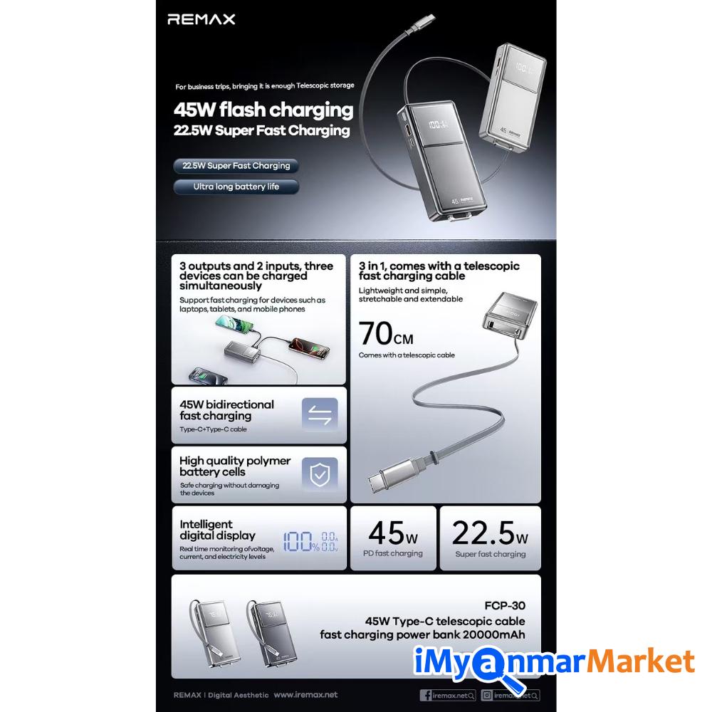 Output voltage and current (Type-C/Type-C with cable): 5V-3A / 9V-3A / 12V-3A / 15V-3A / 20V-2.25A (45W Max)