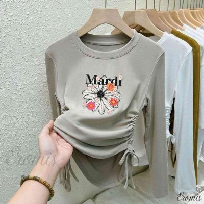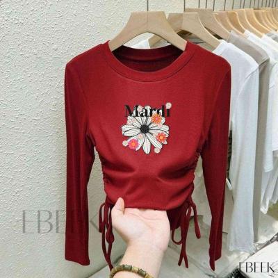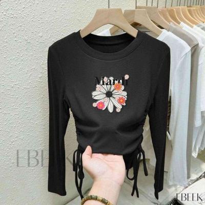 Flower ခါးကြိုး crop top လက်ရှည် အသားကောင်း ရောင်စုံ