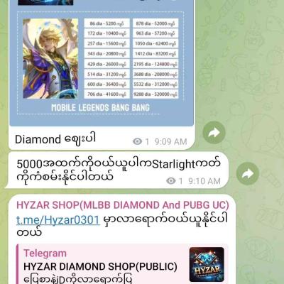 5000ဖိုးအထက်ဝယ်ယူရင်Starlight cardတွေပါကံစမ်းနိုင်မယ် အခြာကသာbonusတွေလဲရယူနိုင်မယ် TGသိုလာရောက်ဝယ်ယူရန် ဖုန်ကိုမဆက်ပါနဲ့ @min1khant2လို့tgမှာရှာပြီးဆက်သွယ်ပါ