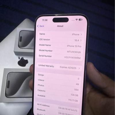 Official warranty ကျန်တဲ့ 15 pro လေး KH/A ( 1 sim + Esim ) Battery health - 92% White titanium 128 GB All original accessories and box