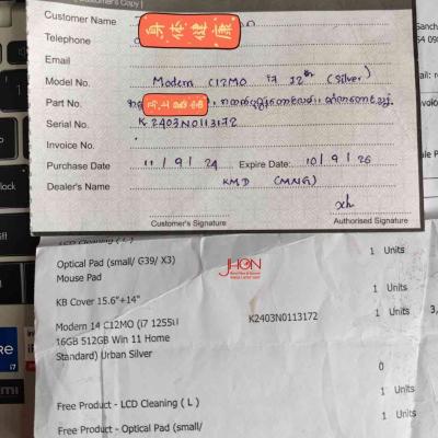 MSI Warranty Card & KMD ဆိုင် ဘောင်ချာပါမည် အော်စီးပါ
