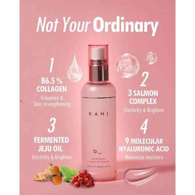 Collagen Mist လေးက Salmon Collagen Extract 86.5% ပါဝင်ပြီးတော့ အသားရေလိုအပ်တဲ့ ရေဓါတ်၊ အာဟာရဓါတ်တွေကို ဖြည့်ပေးတယ်