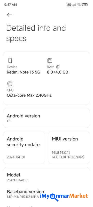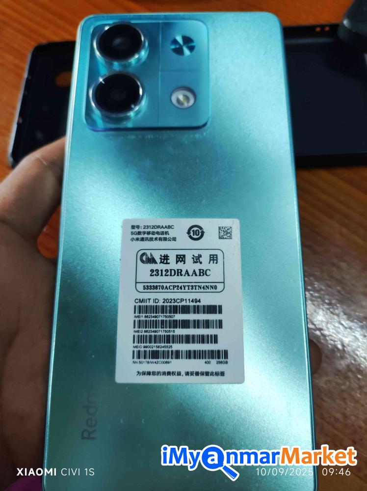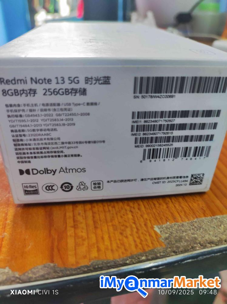 Redmi Note 13 5 RAM=8+4 Storage=256 ဘူးစုံ ....အောစီ....အောမှန်... ရန်ကုန်တိုင်းဒေသကြီး ရွှေပြည်သာမြို့နယ် သံဒင်စျေး Ph-Ph09979763209