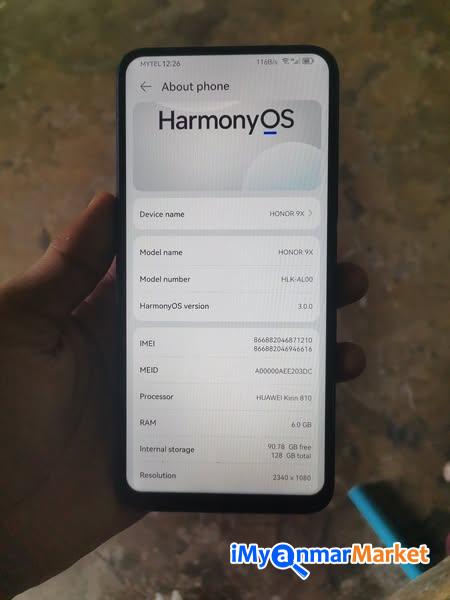 Honor 9x (6/128) မှန်နဲ့ back coverလဲထားတယ် Side finger နဲ့ ထိပွင့် selfie camera မရ main camera ရတယ် ကျန်တာ all fine 140000
