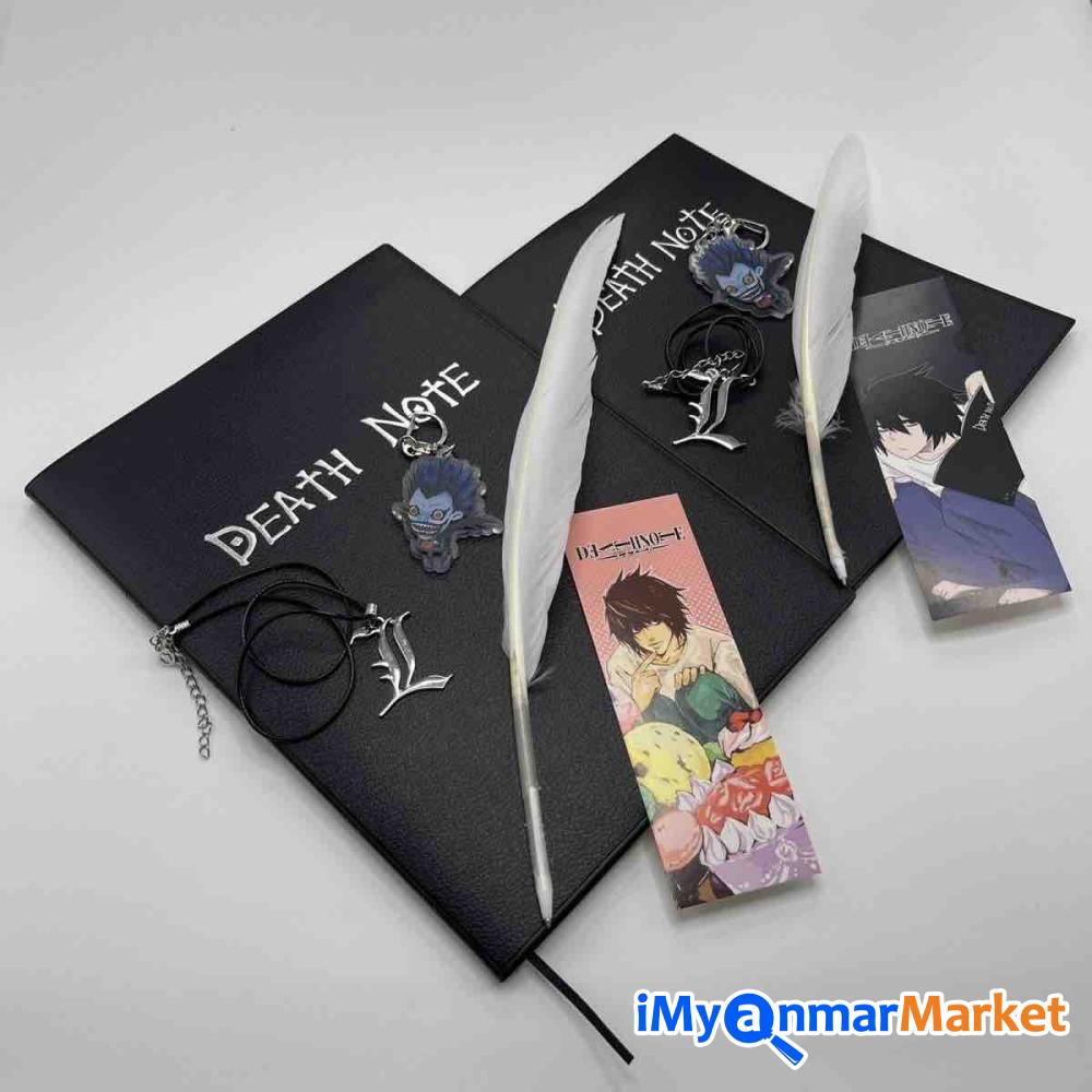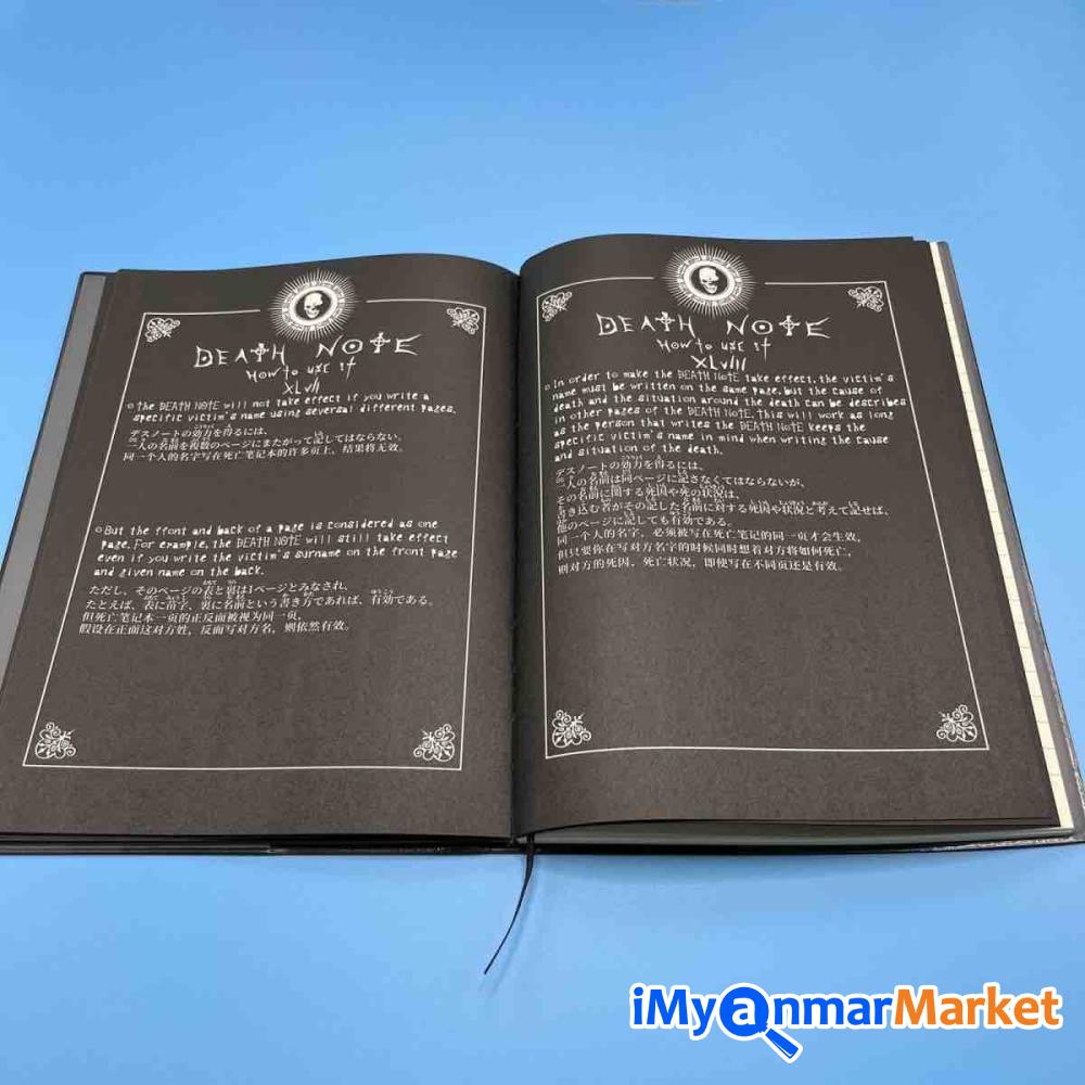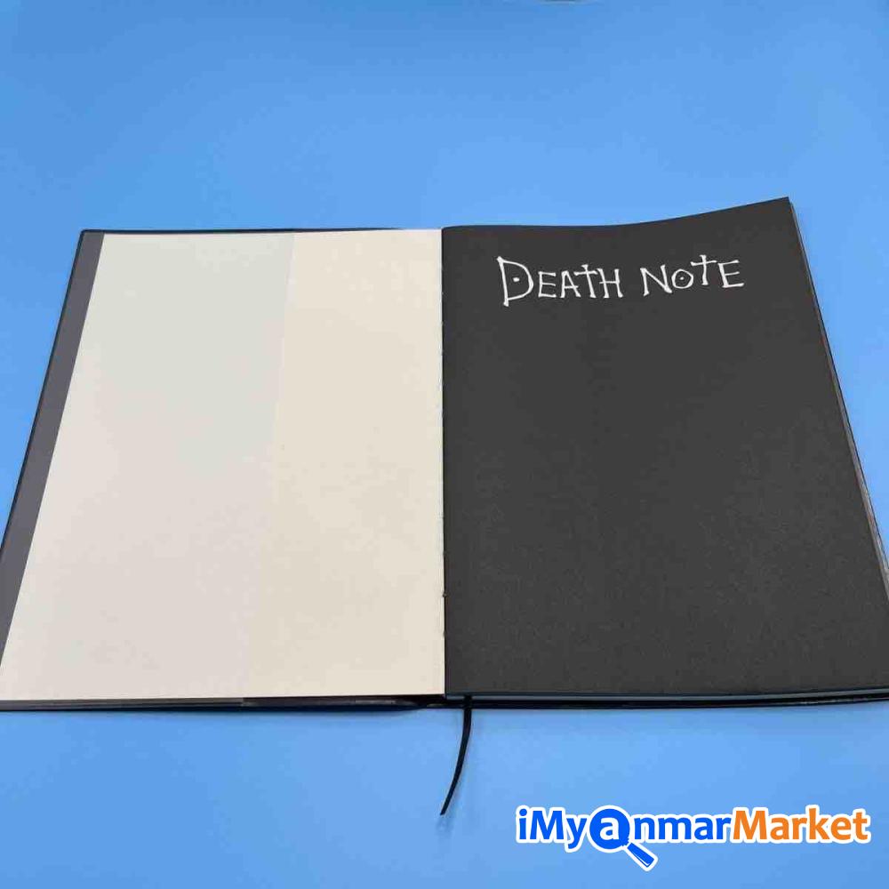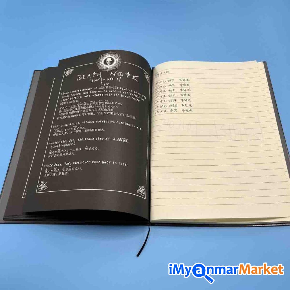 Anime ချစ်သူများအတွက် Death Note စာအုပ်လေးရပါပြီရှင့်၊ စာအုပ်ထဲမှာ ဇာတ်ကားထဲကလ်ို How to Use အညွှုန်းလေးပါ ပါတာမို့ လုံးဝ Death Note အပြည့်ရပါတယ်ရှင့်။ နောက်ပြီး Kira -တ်ခဲ့တဲ့ လူစာရင်း၊ L ရဲ့ နာမည်၊ Light ရဲ့ နာမည်အဆုံးထိ ပါ ရေးထားတာမို့ Death Note ကြိုက်တဲ့သူများ အခုပဲ မှာယူလိုက်တော့နော်