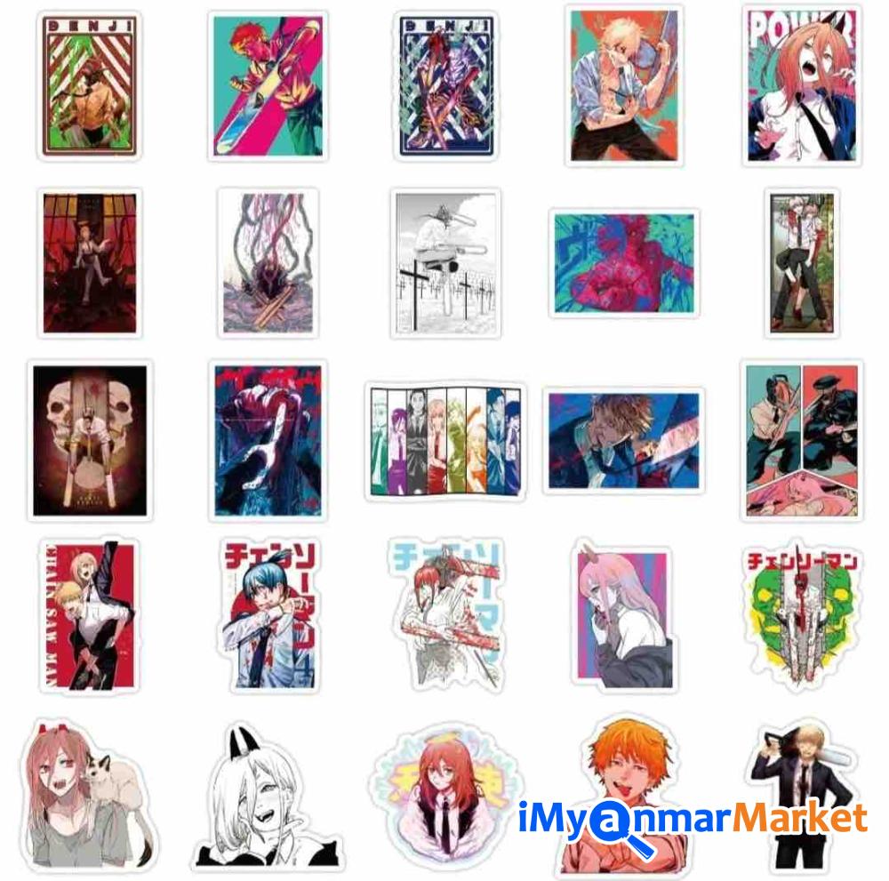 Anime Chainsaw Man Fan များအတွက် Chainsaw Man Sticker အကောင်းစားလေးတွေ ရပါပြီနော်။ Sticker က လက်တော့၊ ဖုန်း၊ Tv တွေမှာပါ ကပ်လို့ရပြီး၊ ကဒ်ခွါက အမာသားလေးမို ပြဲမှာ ပြုမှာ စိတ်မပူရပါဘူးနော်၊ တစ်ခုချင်း ပြန်ရောင်းချင်တဲ့သူတွေအတွက်လည်း အဆင်ပြေပါတယ်ရှင့်