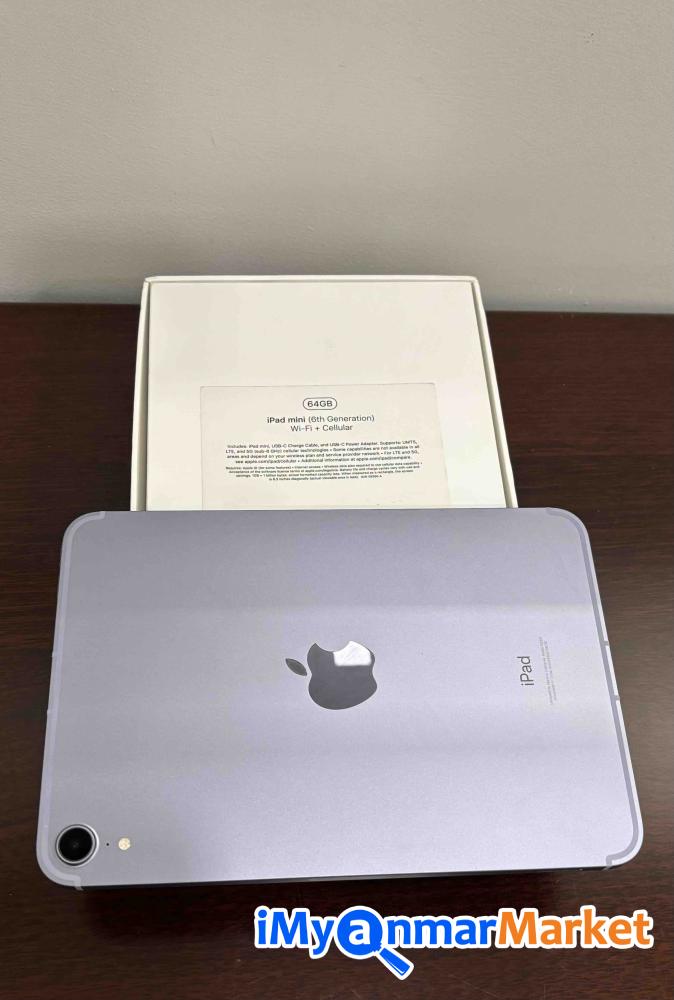 I pad mini 6 64g. wi-fi + cellular 100% like new Battery health 95% movie ကြည့်ဖို့ အတွက်ပဲသုံးထားတဲ့ အသစ်တိုင်းသန့်တဲ့ ipad လေးပြန်ရောင်းချင်ပါတယ်.