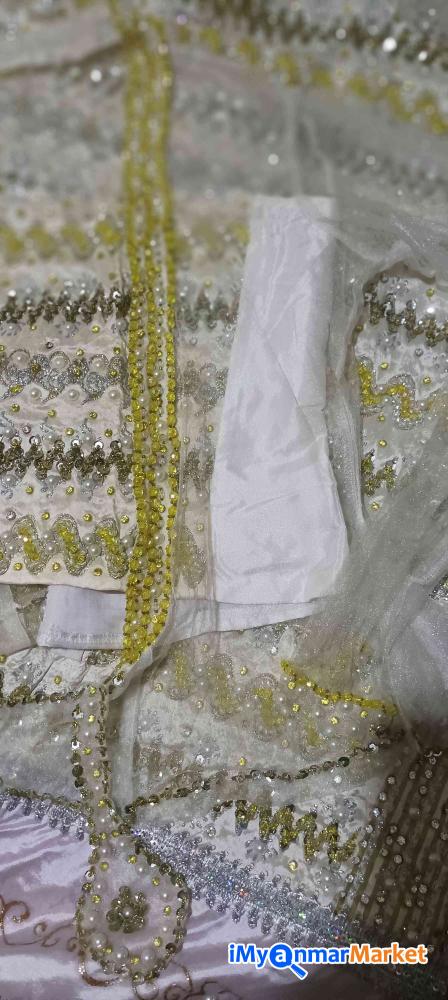 ထိုင်မသိမ်းဝတ်စုံတစ်စုံစာ ၀မ်းဆက် ရင်ခံအပေါ်ဇာခါးတောင်အကျီ ပုဝါ ချိတ်ပတ်ထမီထိုင်မသိမ်းရည်သီနားအရှည် ကျောက်စီးကွင့်ဒီဇိုင်းများအပြည့်ထိုးပေးထားပါတယ် . Vb.no- 09792463418 သို့တိုက်ရိုက်ဆက်သွယ်ဝယ်သူနိုင်ပါတယ်.