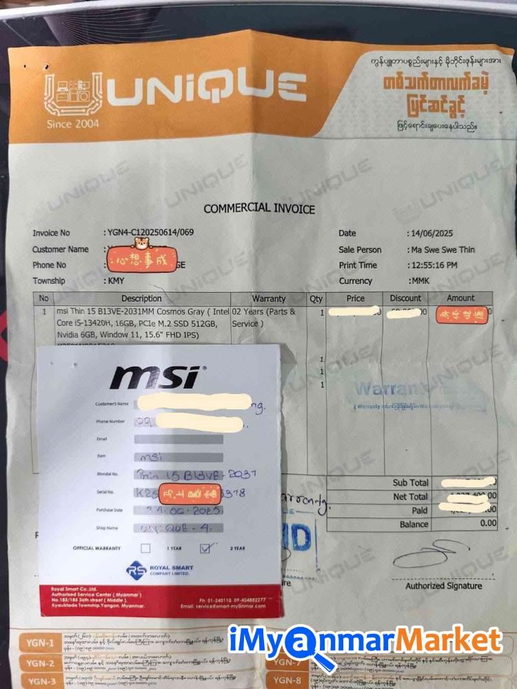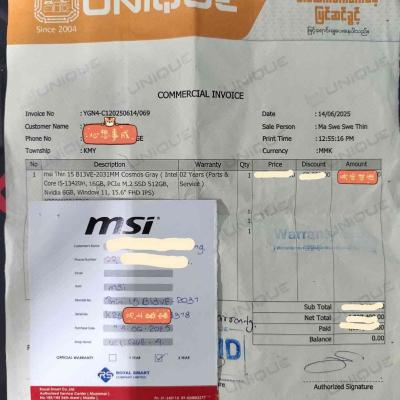 MSI Myanmar Warranty & Unique ဆိုင် Warranty 1Year & 7Months ကျန်ပါမည်