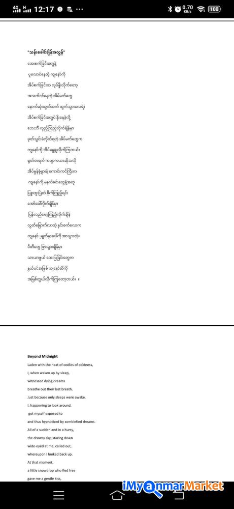 မော်ဒန်နှင့်ပိုစ့်မော်ဒန်ကဗျာများ အင်္ဂလိပ်၊မြန်မာ (e-bookပါ) ဝယ်ယူလိုပါက viberနံပါတ် 09941233709ကို ဆက်သွယ် မေးမြန်းနိုင်ပါတယ်။