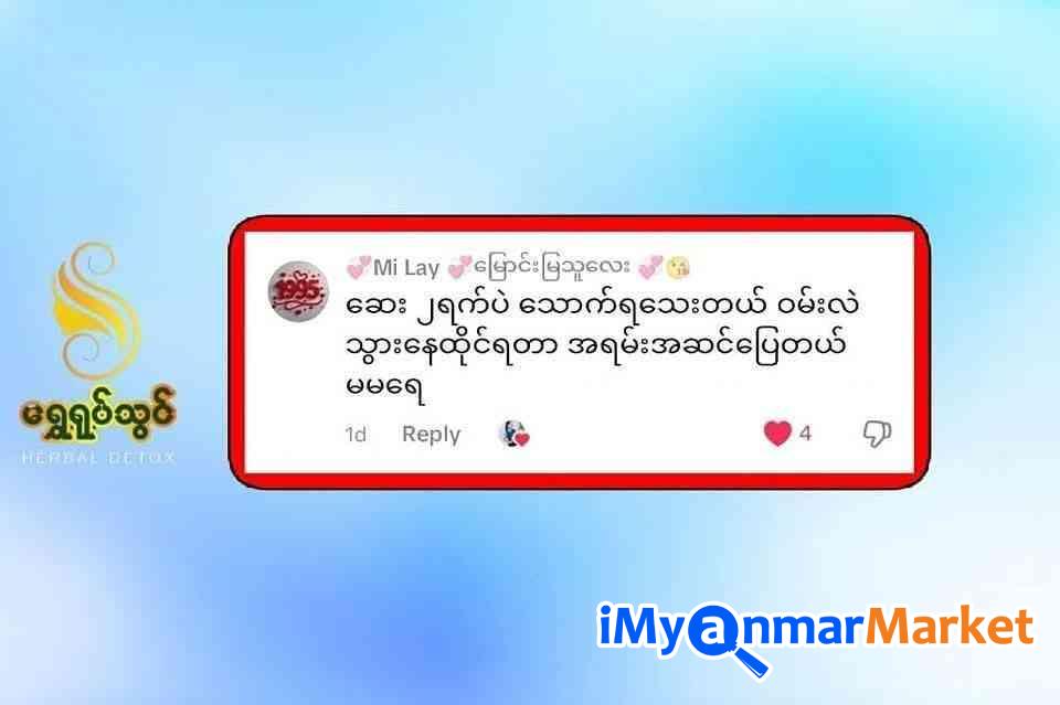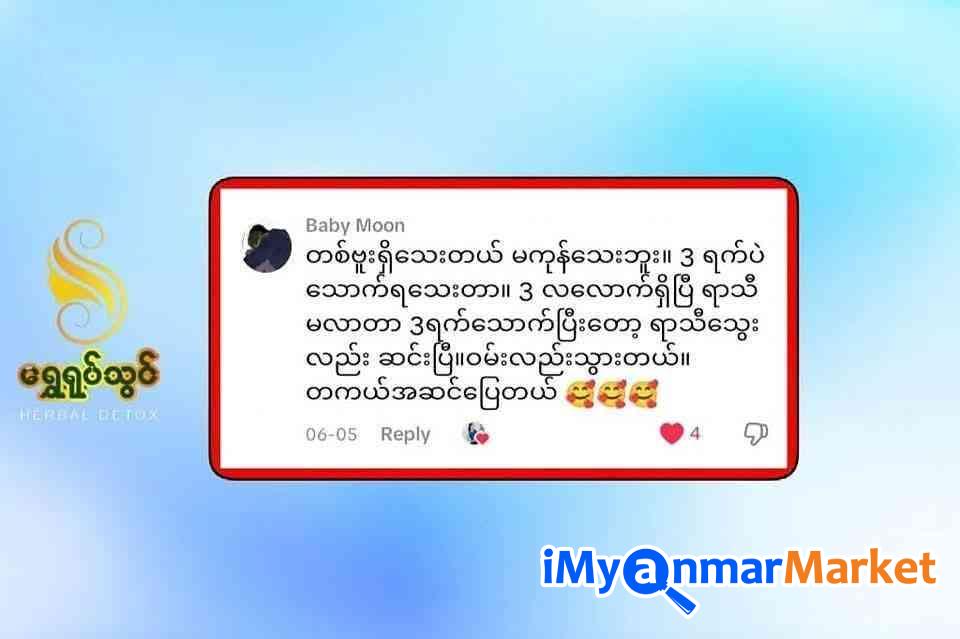 ရွှေရုပ်သွင်ဆေးလေးက Herbal Detox ဖြစ်လို့ ဝမ်းရှင်းရှင်းသွားပြီး ပေါ့ပါးဖို့ ရေကို တရက်မှာ ၂လီတာခွဲ ၃လီတာခန့် သောက်ပေးပါ 🍀