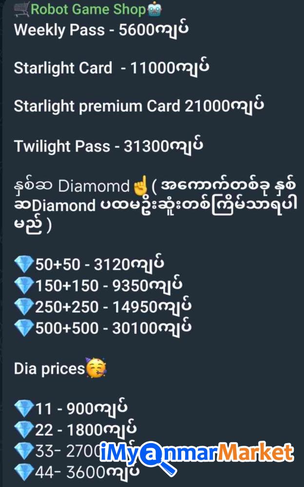 Mobilegend Diamond များလာရောက်ဝယ်ယူနိုင်ပါပြိ