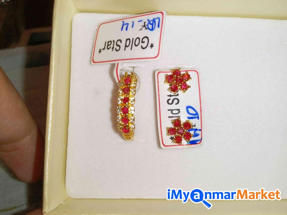 ပတ္တမြားနတ်သွေး လက်စွပ်+နားကပ် ရွှေရည်စိမ်