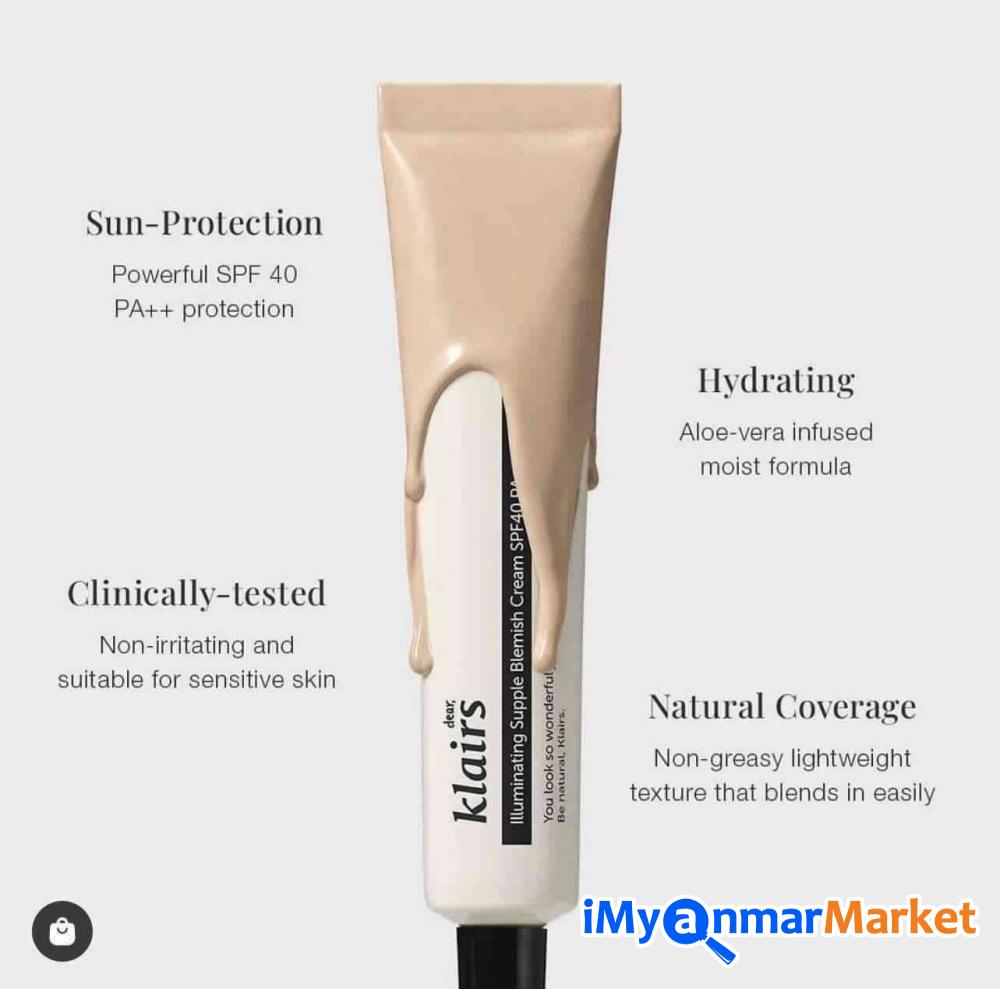 BB Creamကိုမှ SPF40 PA++မို့ နေလောင်ဒဏ်ကိုလည်း ကာကွယ်ပေးပါတယ်နော် လိမ်းပြီးတာနဲ့အသားနဲ့လုံးဝတစ်ထပ်တည်းဖြစ်သွားတာမလို့ ပြာသွားတာ၊ကွက်သွားတာမျိုး မဖြစ်စေပါဘူးနော်💕