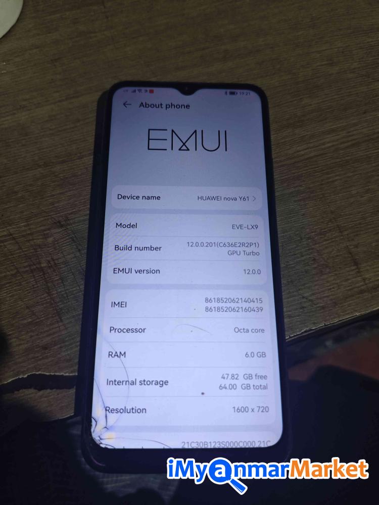 Huawei nova Y61 Ram 6, 64 မပေါ်မှန်ကွဲနေ power ခလုပ်မရ လက်ဖွှေနဲ့ မျက်နှာစကန်နဲ့ဖွင့် social အားလုံးသုံးလို့အဆင်ပြေ ပြင်မည်ဆို မုန်ရောpowerခလုပ်ရော 60000လောင်ကုန်မည်