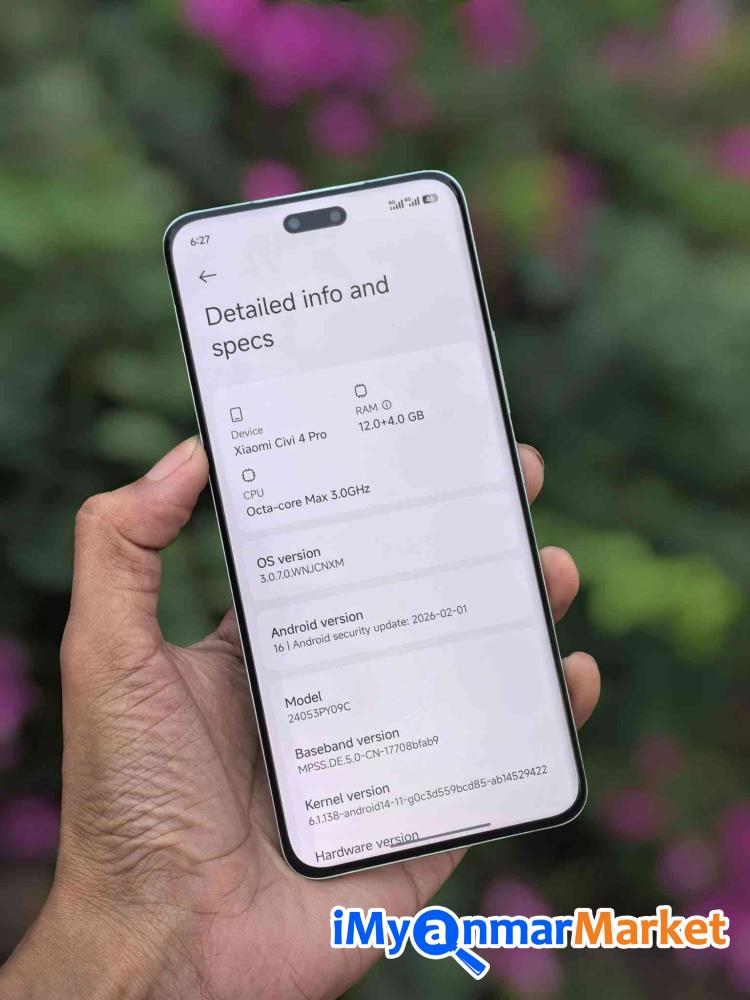 💚 Civi 4 Pro 💚 Ram 12 256 Gb ( အော်ပတ်လည် ) Camera ရှယ်မိုက် 📷 Snapdragon 8s gen3 / Stereo Speakers 🔊 4700mah battery 🔋67W Charger 🔌 All Fine. No error Error အာမခံ ( ၁ )လ ပေးပါတယ်