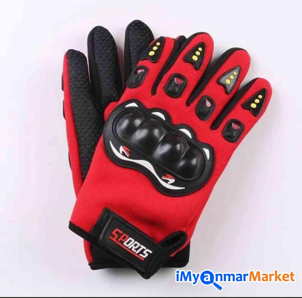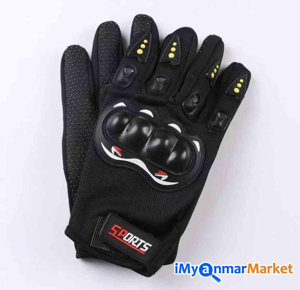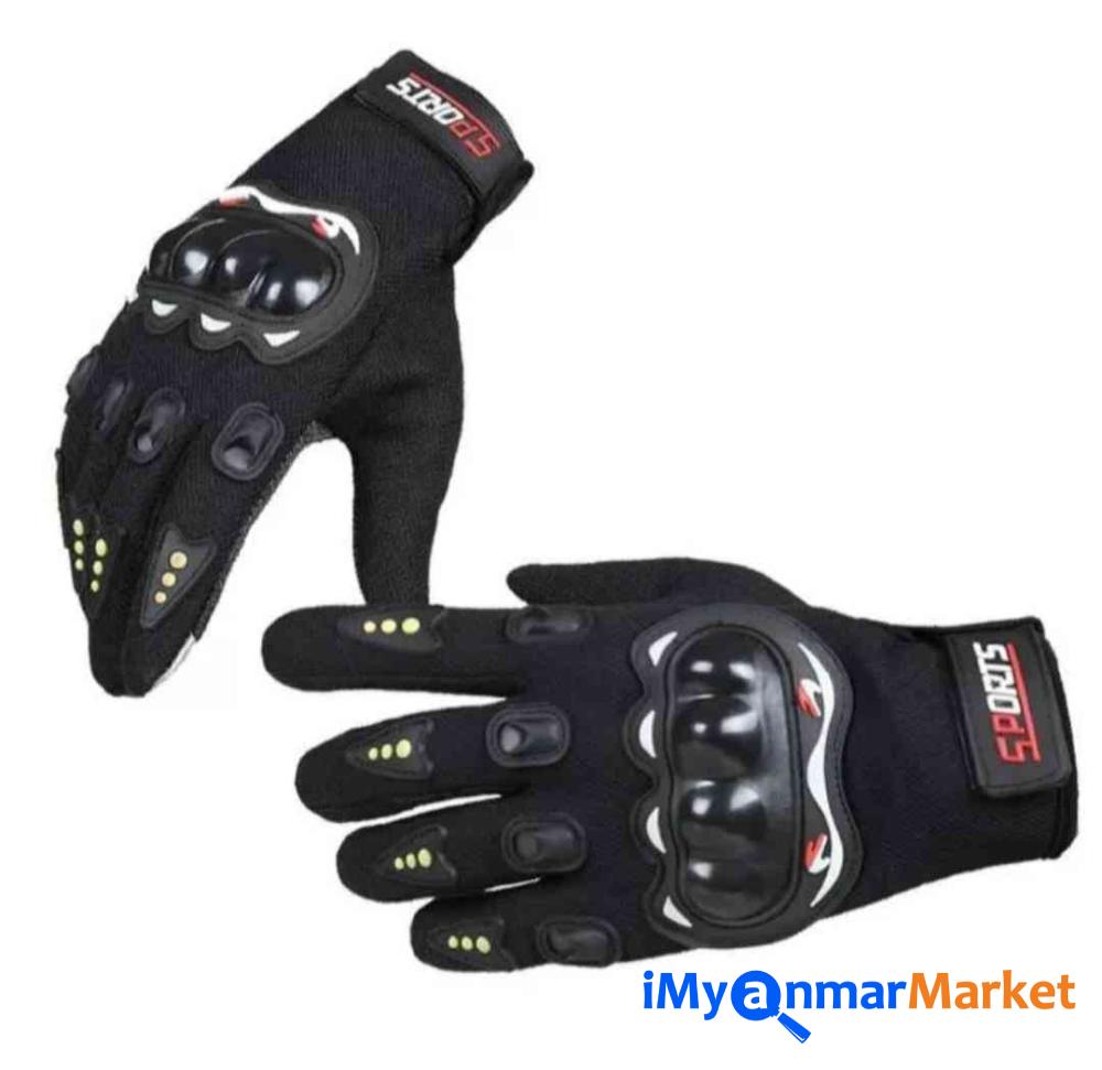 မော်တော်ဆိုင်ကယ်မောင်းနှင်ရာတွင် အသုံးပြုနိုင်သော လက်အိတ်၊ မောင်းနှင်ရာတွင် လက်ကို ကာကွယ်ပေးပြီး နေရောင်ကာကွယ်မှုပါဝင်သော လက်အိတ်ဖြစ်သည်။
