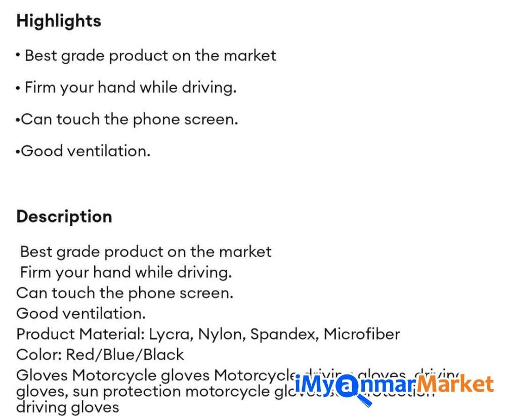 Description (ကုန်ပစ္စည်းဖော်ပြချက်)